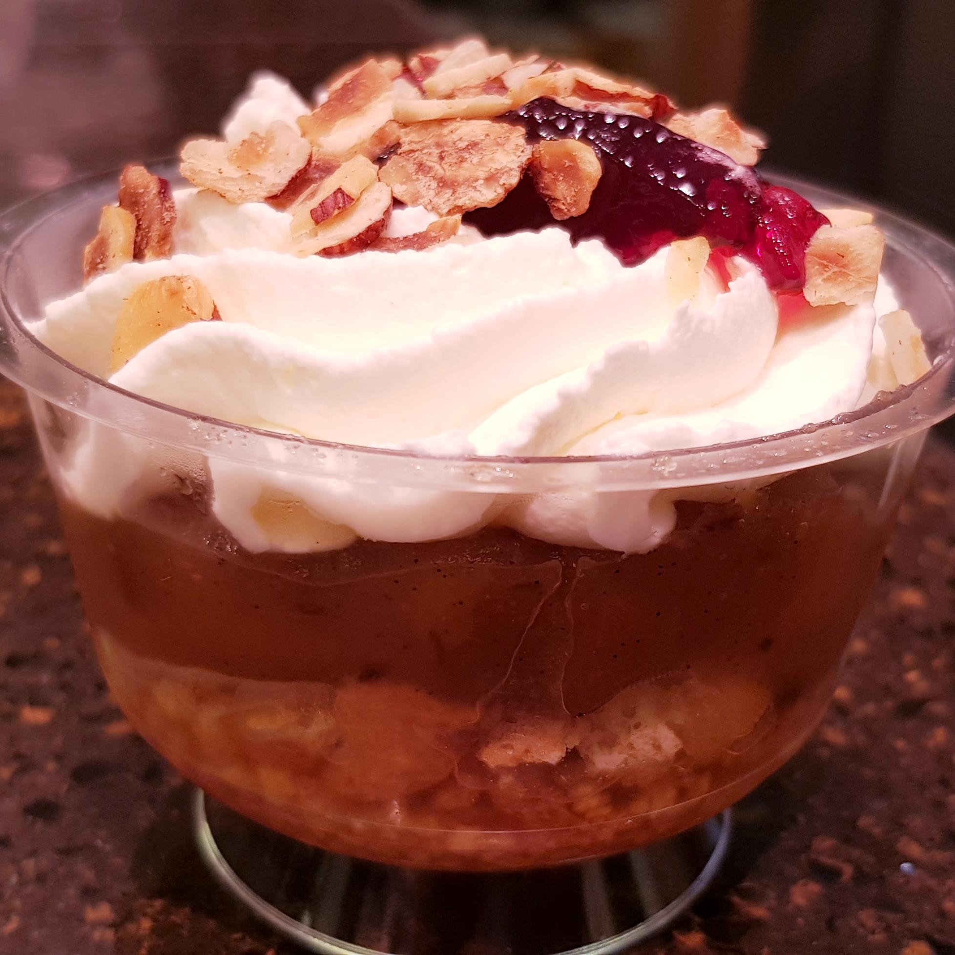 Dessert: Gammeldags æblekage m. makroner, flødeskum og ribsgele