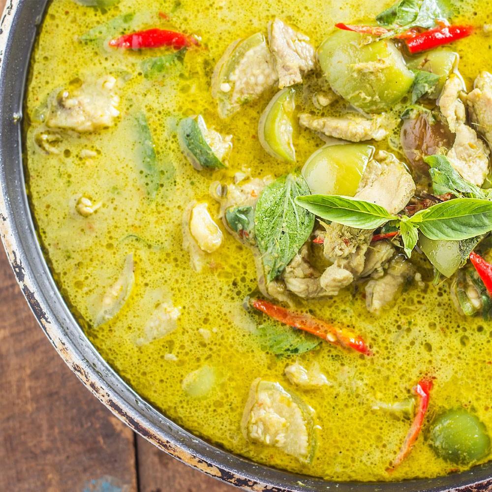 Karry kyllingesuppe med grønærter og ris - lidt stærk